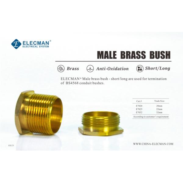 ELECMAN® BS4568 20mm-32mm male brass conudit bushings short type are used for termination of BS4568 conduit bushes.